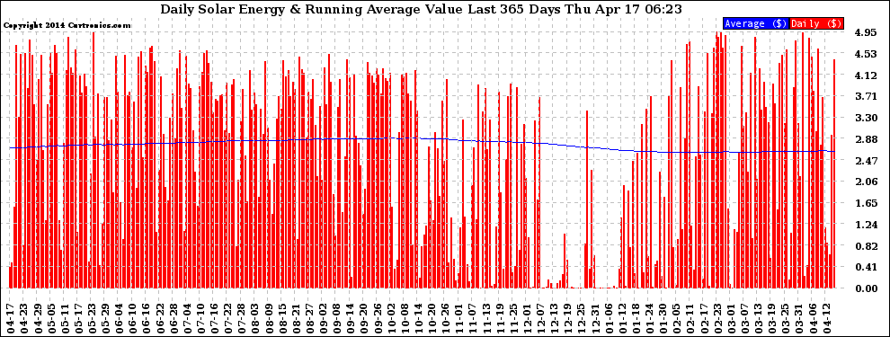 20140417 Daily Solar Energy Production Value Running Average Last 365 Days