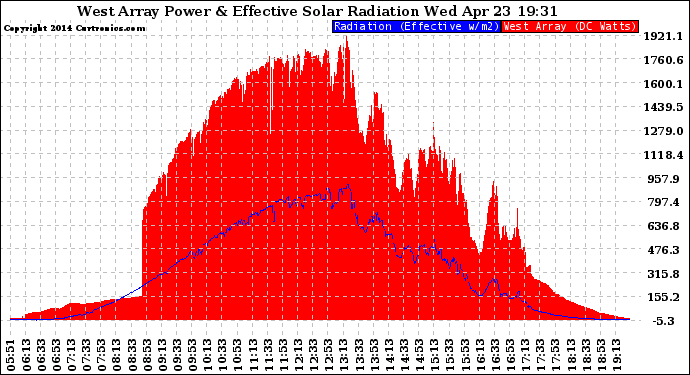 20140423 West Array Power Output & Effective Solar Radiation