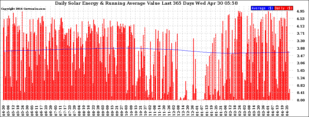 20140430 Daily Solar Energy Production Value Running Average Last 365 Days
