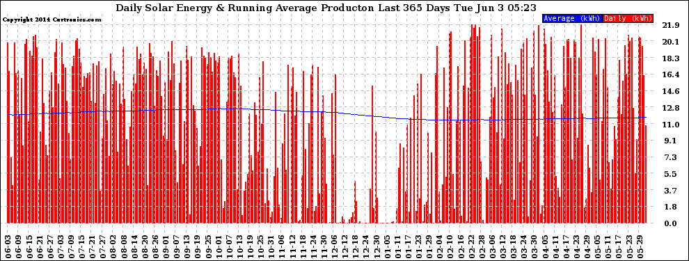 20140603 Daily Solar Energy Production Running Average Last 365 Days