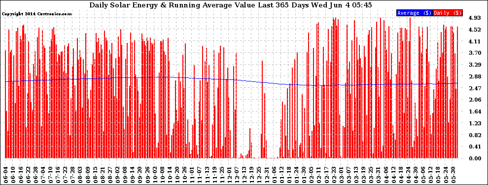 20140604 Daily Solar Energy Production Value Running Average Last 365 Days