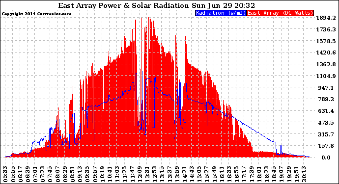 20140629 East Array Power Output & Solar Radiation