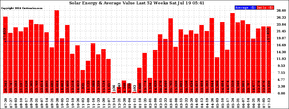 20140719 Weekly Solar Energy Production Value Last 52 Weeks