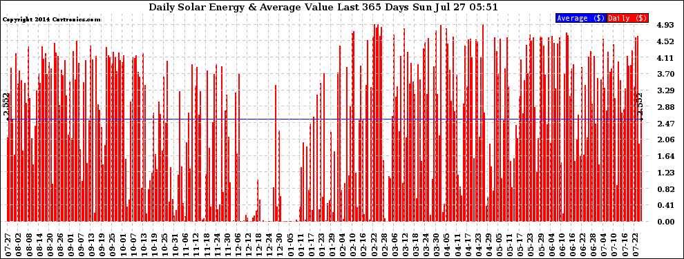 20140727 Daily Solar Energy Production Value Last 365 Days