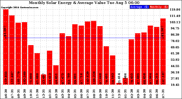 20140805 Monthly Solar Energy Production Value