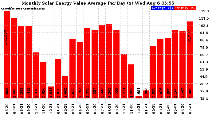 20140806 Monthly Solar Energy Value Average Per Day ($)