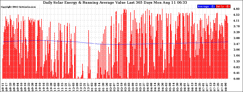 20140811 Daily Solar Energy Production Value Running Average Last 365 Days