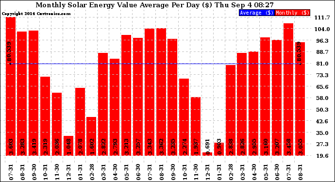 20140904 Monthly Solar Energy Value Average Per Day ($)