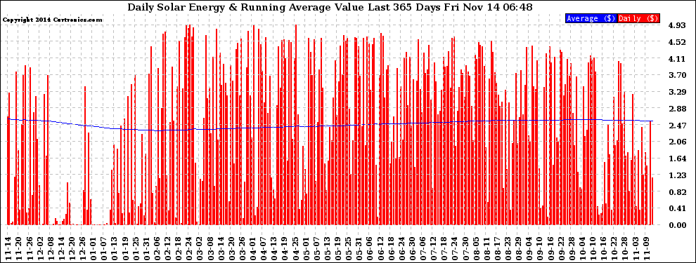 20141114 Daily Solar Energy Production Value Running Average Last 365 Days
