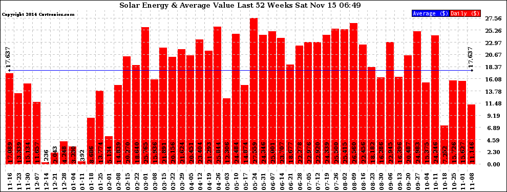 20141115 Weekly Solar Energy Production Value Last 52 Weeks