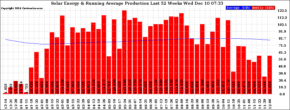 20141210 Weekly Solar Energy Production Running Average Last 52 Weeks