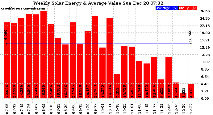 20141228 Weekly Solar Energy Production Value
