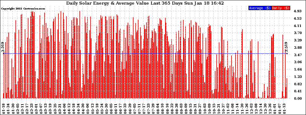 20150118 Daily Solar Energy Production Value Last 365 Days