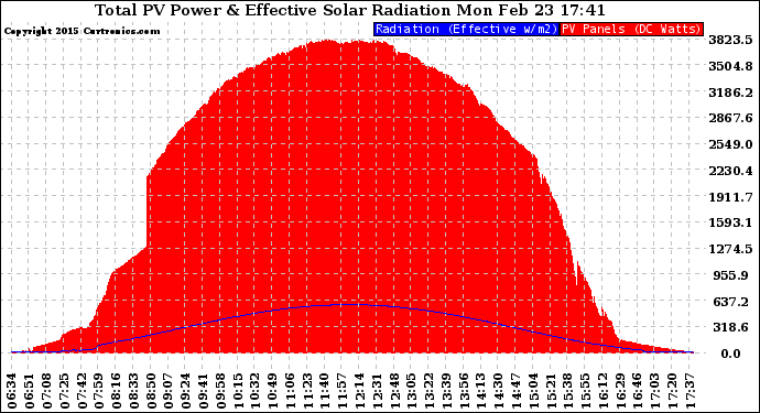 20150223 Total PV Panel Power Output & Effective Solar Radiation