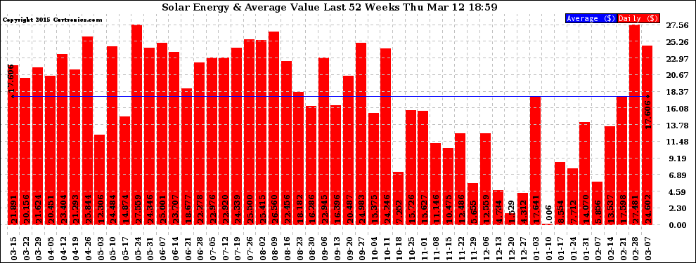 20150312 Weekly Solar Energy Production Value Last 52 Weeks