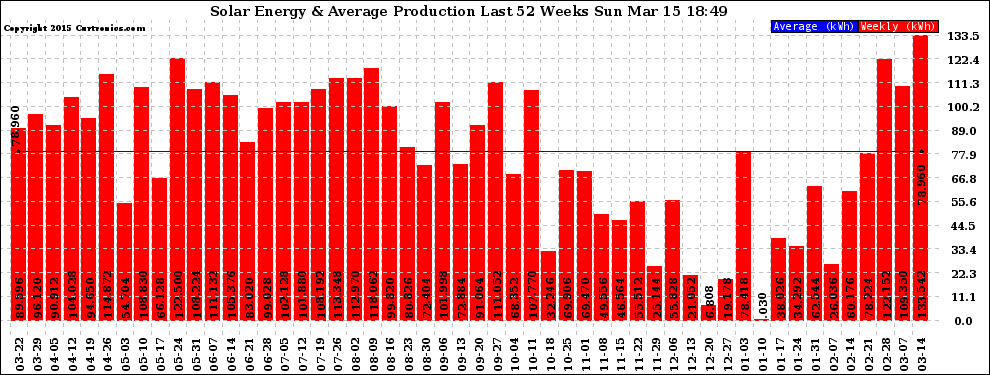 20150315 Weekly Solar Energy Production Last 52 Weeks