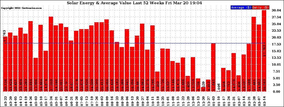 20150320 Weekly Solar Energy Production Value Last 52 Weeks