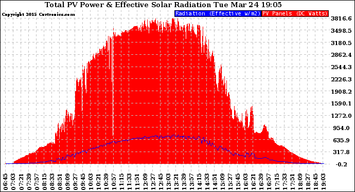20150324 Total PV Panel Power Output & Effective Solar Radiation