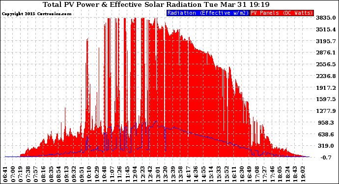 20150331 Total PV Panel Power Output & Effective Solar Radiation