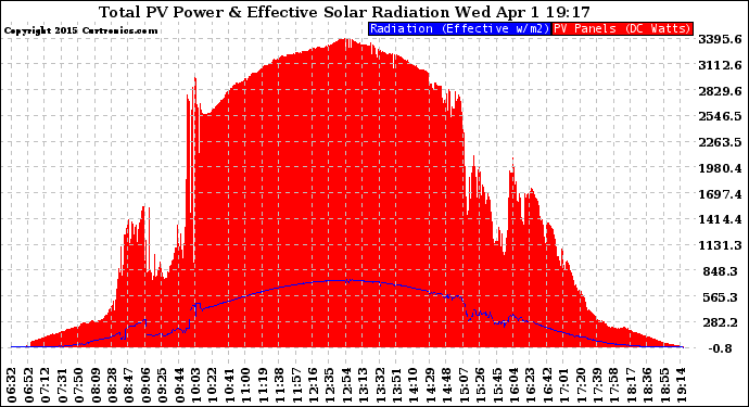 20150401 Total PV Panel Power Output & Effective Solar Radiation