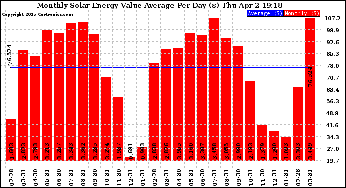 20150402 Monthly Solar Energy Value Average Per Day ($)
