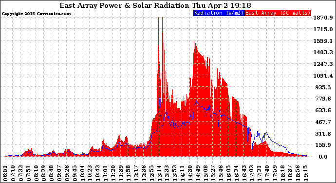 20150402 East Array Power Output & Solar Radiation