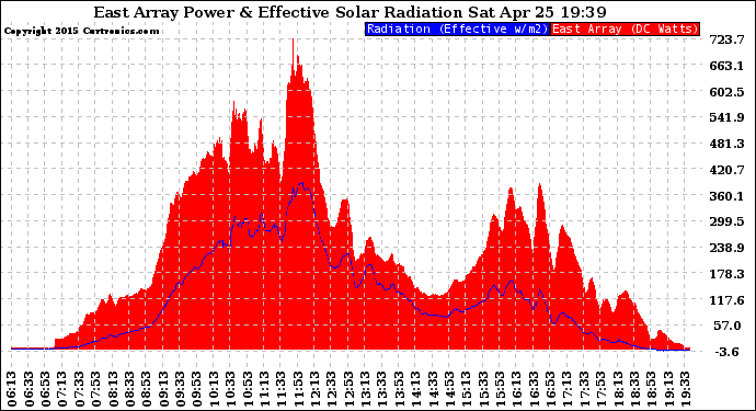 20150425 East Array Power Output & Effective Solar Radiation
