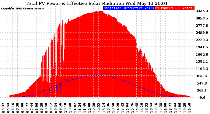 20150513 Total PV Panel Power Output & Effective Solar Radiation