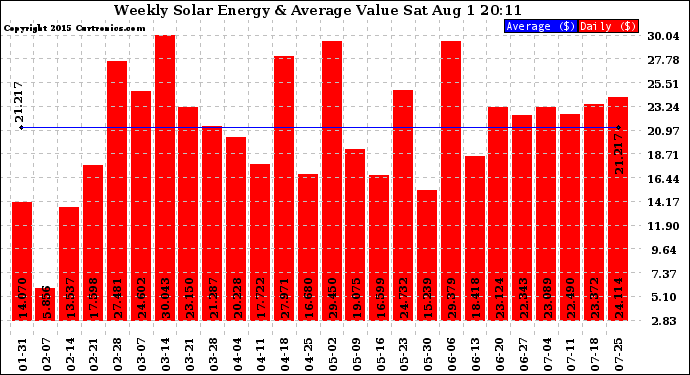 20150801 Weekly Solar Energy Production Value