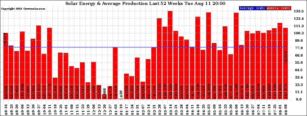 20150811 Weekly Solar Energy Production Last 52 Weeks