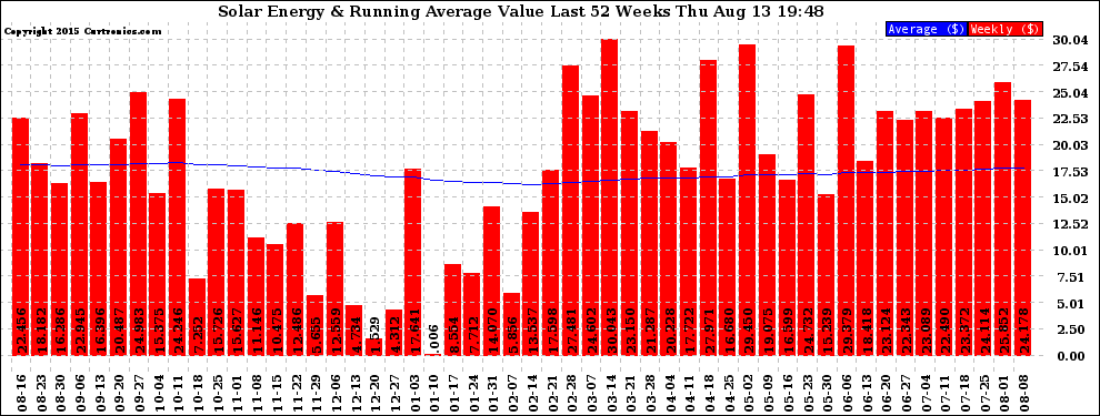 20150813 Weekly Solar Energy Production Value Running Average Last 52 Weeks