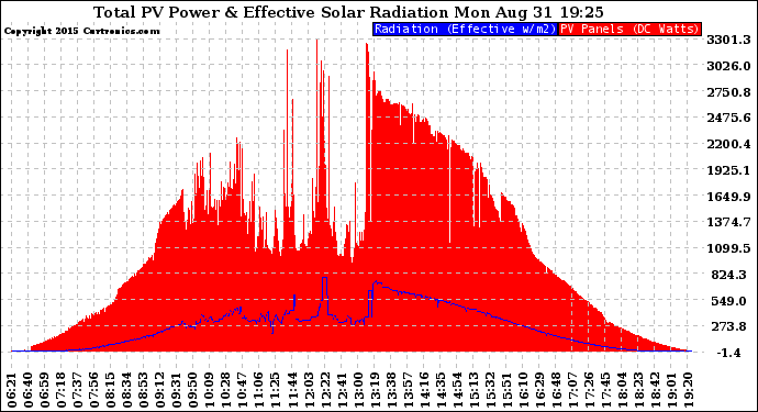20150831 Total PV Panel Power Output & Effective Solar Radiation