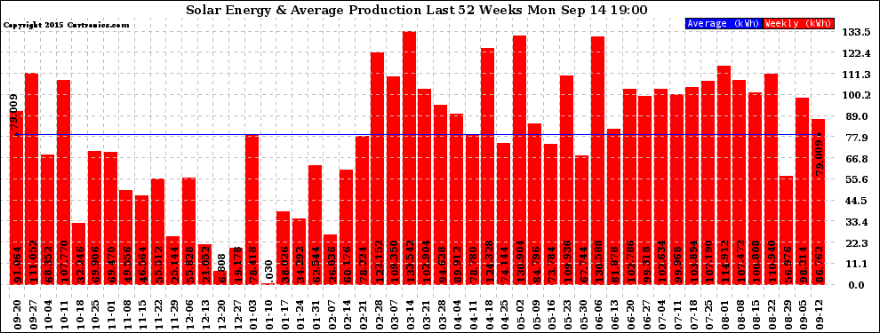 20150914 Weekly Solar Energy Production Last 52 Weeks