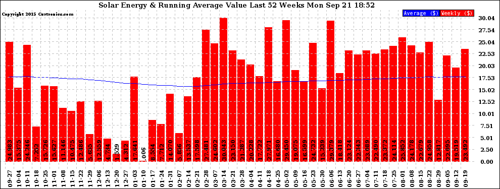 20150921 Weekly Solar Energy Production Value Running Average Last 52 Weeks