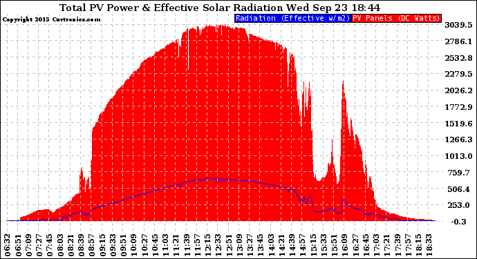 20150923 Total PV Panel Power Output & Effective Solar Radiation