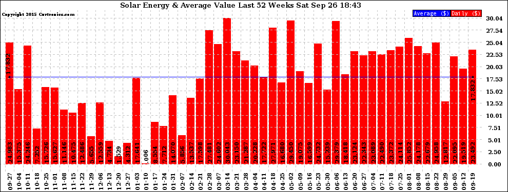 20150926 Weekly Solar Energy Production Value Last 52 Weeks