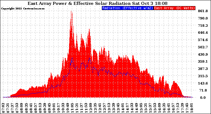 20151003 East Array Power Output & Effective Solar Radiation