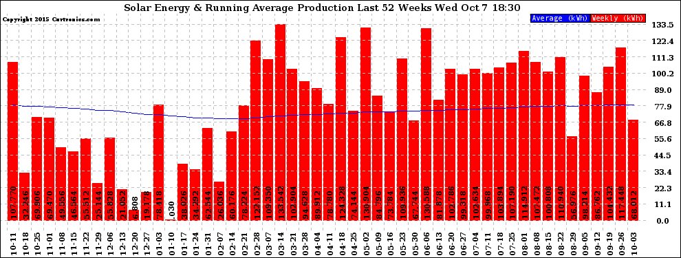 20151007 Weekly Solar Energy Production Running Average Last 52 Weeks