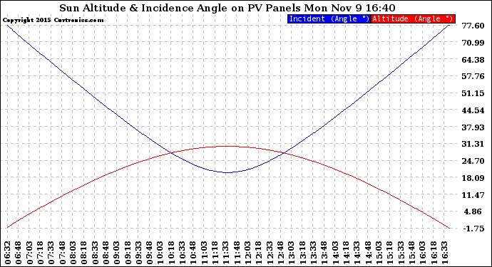 20151109 Sun Altitude Angle & Sun Incidence Angle on PV Panels