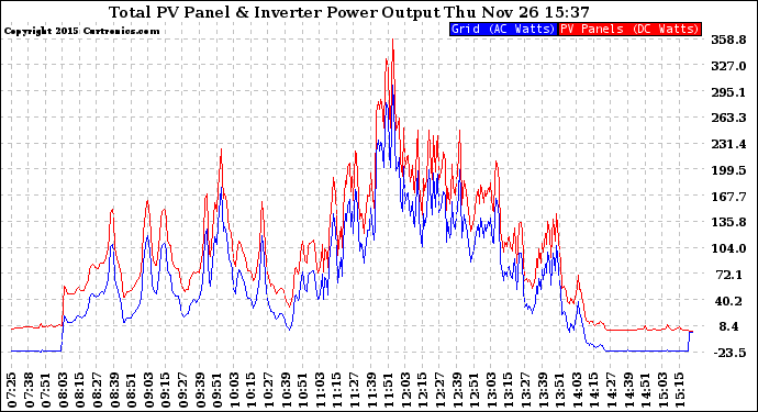20151126 PV Panel Power Output & Inverter Power Output