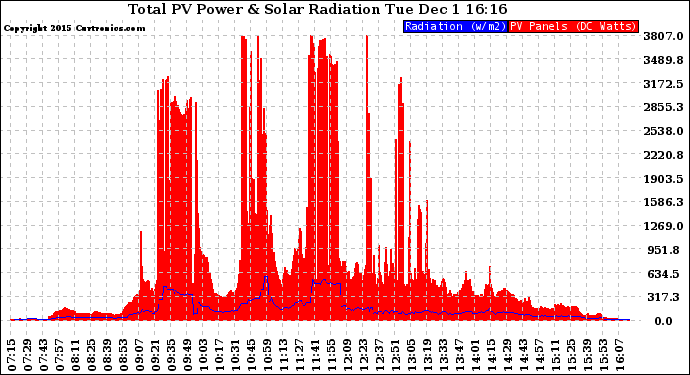 20151201 Total PV Panel Power Output & Solar Radiation