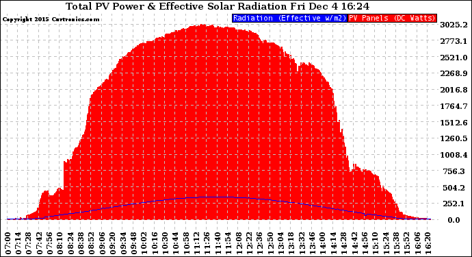 20151204 Total PV Panel Power Output & Effective Solar Radiation