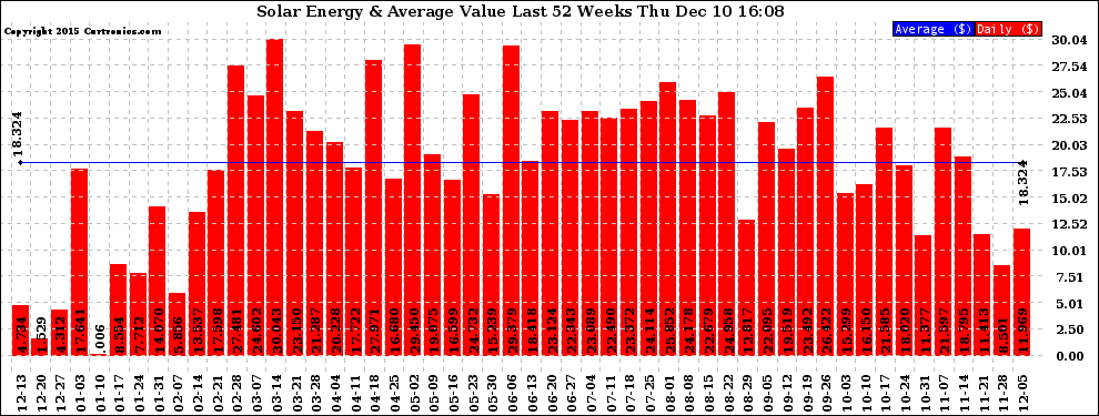 20151210 Weekly Solar Energy Production Value Last 52 Weeks
