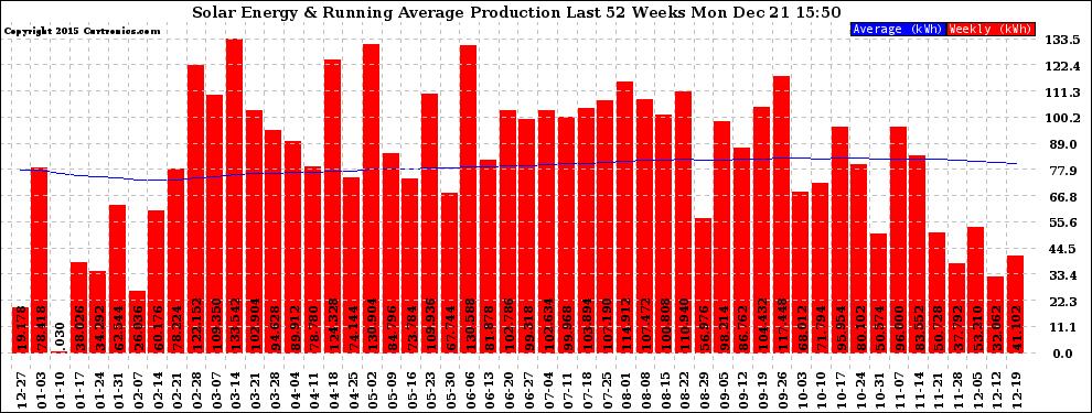 20151221 Weekly Solar Energy Production Running Average Last 52 Weeks