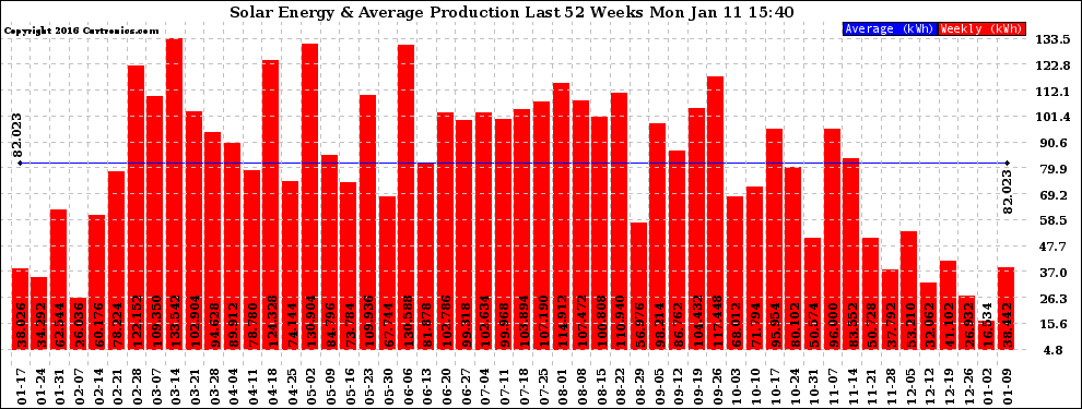 20160111 Weekly Solar Energy Production Last 52 Weeks