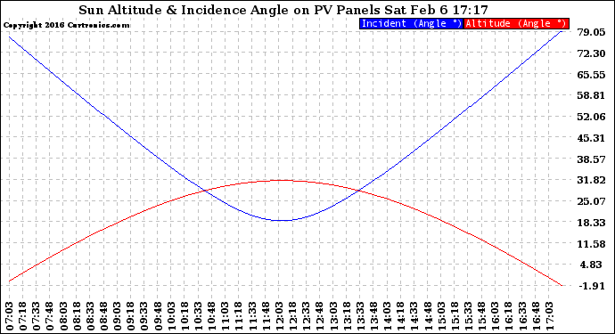 20160206 Sun Altitude Angle & Sun Incidence Angle on PV Panels