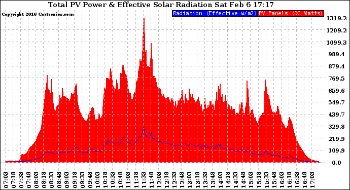 20160206 Total PV Panel Power Output & Effective Solar Radiation