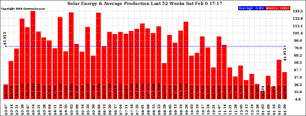 20160206 Weekly Solar Energy Production Last 52 Weeks