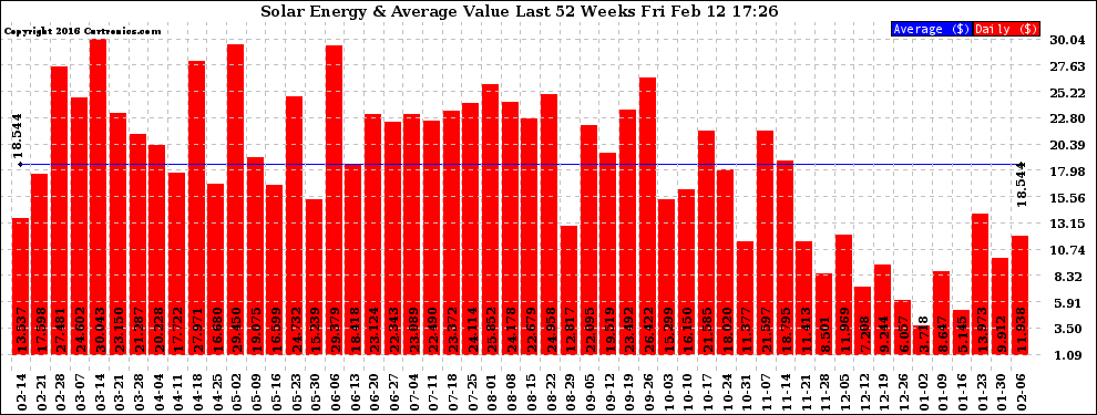 20160212 Weekly Solar Energy Production Value Last 52 Weeks