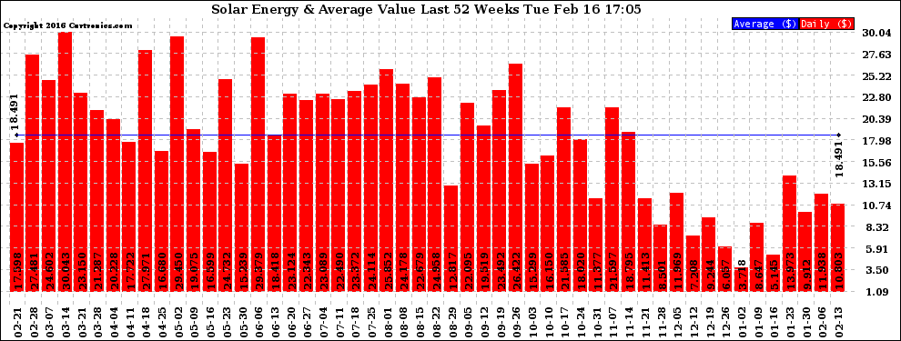 20160216 Weekly Solar Energy Production Value Last 52 Weeks